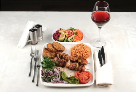- Lunch includes soup of the day, salad, chicken skewer with rice and garlic, fruits or dessert